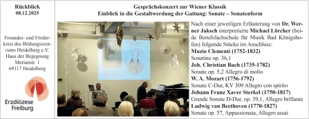 Das Flötenkonzert war der letzte Programmpunkt. Unter der kundigen Leitung von Imre Sallay hatten die Semiprofis zuvor noch sehr überzeugend kontrastreich, mit Charme und Esprit für zwei Raritäten geworben. Nach Antonio Salieri „Sinfonia Veneziana“ überraschte der sogar von Beethoven bewunderte Pianist Johann Sterkel, einst Hofmusiker in Mainz und Aschaffenburg, mit vielen kleinen Winkelzügen und Schwärmereien in seiner Sinfonie D-Dur op. 35 Nr.1. (KN, Christian Strehk)